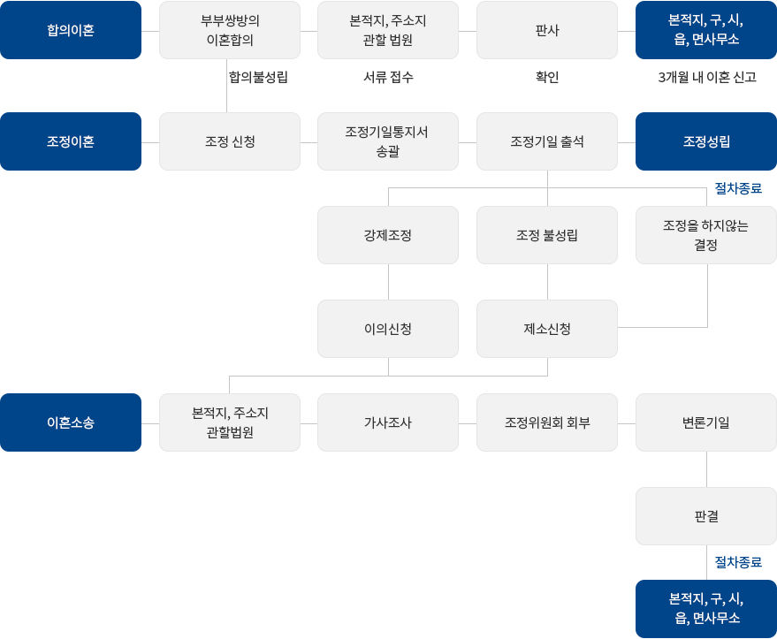 조정이혼은 분쟁이 발생한 경우에 소송을 통한 판결에 의하기보다 당사자의 타협과 양보로 신속하고 경제적으로 분쟁을 해결하기 위하여 설치된 제도이며 법관이나 학식과 덕망이 높은 사회 저명인사로 구성된 조정위원이 조정을 주재하게 되고, 특히 이혼사건의 경우 조정을 통하여 일차적으로 건전한 혼인의 지속을 권유하고 부득이하게 이혼을 할 경우에도 당사자와 그 자녀에게 미치는 피해를 우선적으로 고려하여 처리함으로서 가정의 파탄에 따른 충격을 최소화 할 수 있는 가장 합리적인 절차라고 할 수 있습니다.